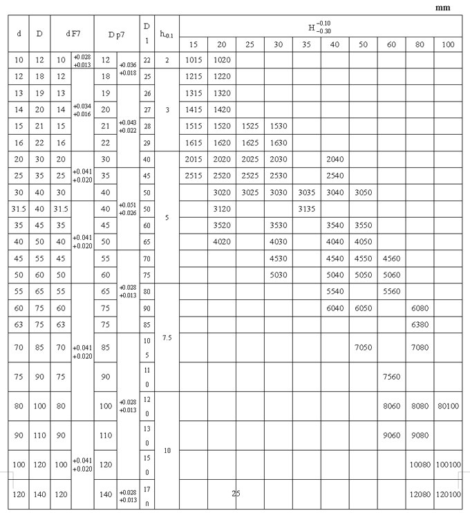 JF 雙金屬產品系列軸承標準尺寸