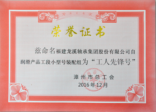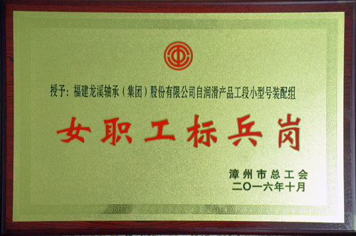 2016年,公司自潤滑產(chǎn)品工段小型號裝配組收獲頗豐,繼獲得公司2015年度“先進班組”后,又被漳州市總工會授予漳州市“工人先鋒號”及“女職工標兵崗”榮譽稱號。