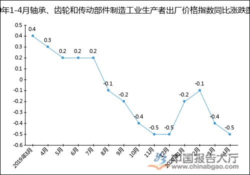 根據中國報告大廳對2020年1-4月軸承、齒輪和傳動部件制造工業生產者出廠價格指數進行監測統計顯示:2020年4月軸承、齒輪和傳動部件制造工業生產者出廠價格指數為99.5,同比下降0.5%。2020年1-4月軸承、齒輪和傳動部件制造工業生產者出廠價格指數