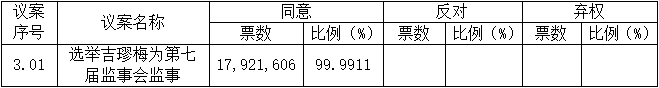 本次股東大會審議的議案三投票采用累積投票制表決,此議案的表決情況僅統計列示表決同意數。