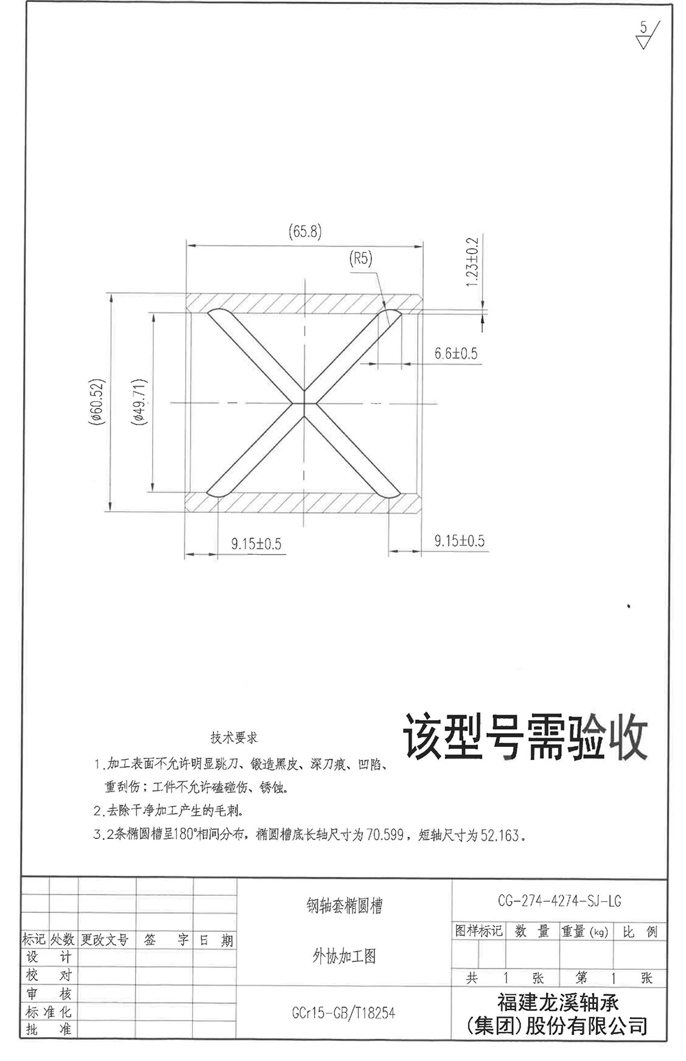 驗(yàn)收型號的尺寸加工要求如附圖
