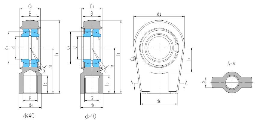 若是左旋螺紋,軸承型號和螺紋標(biāo)記需加“L”和“左”,例如:SILRN40ES M35×1.5左-6H。