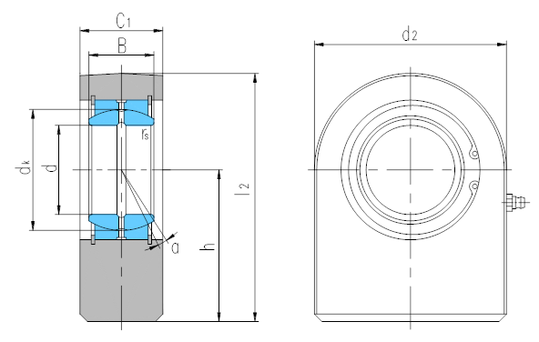 產(chǎn)品特點:焊接型桿端關節(jié)軸承由桿端體和向心關節(jié)軸承GE…ES或GEEW…ES組裝而成,用擋圈固定,桿端體材料是易焊接鋼,帶有長方形焊接面;可通過油杯潤滑。
