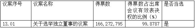 本次股東大會審議的議案十三采用累積投票制,此議案的表決結果僅統計列示表決同意股數及比例。