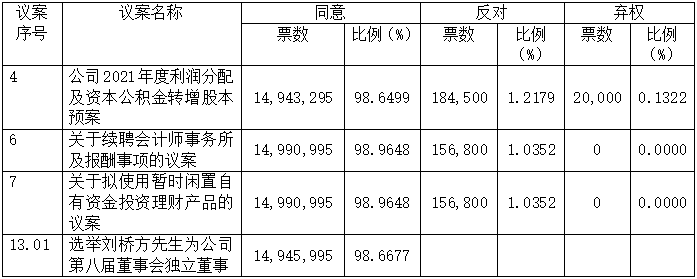 2021年年度股東大會決議公告