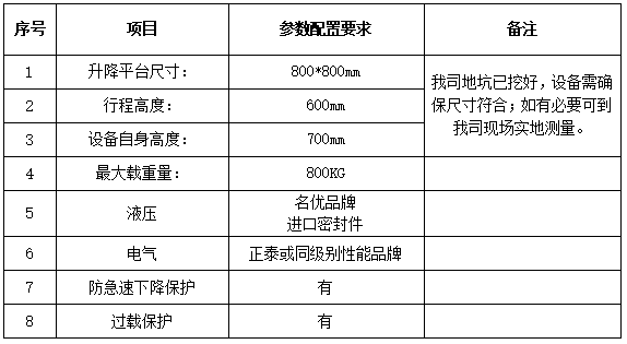 項目名稱:液壓升降平臺采購與安裝項目