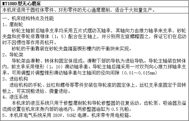 M1080無心磨床技術(shù)要求