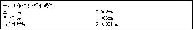 設(shè)備驗(yàn)收時(shí),根據(jù)實(shí)際生產(chǎn)情況,雙方協(xié)商選用其它產(chǎn)品型號作為驗(yàn)收型號,以產(chǎn)品磨削精度來驗(yàn)證設(shè)備加工精度,及對“主要技術(shù)參數(shù)”中的內(nèi)容進(jìn)行驗(yàn)收