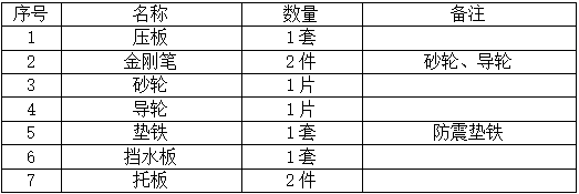 縱進(jìn)給托架(磨φ5~φ80mm)、砂輪吊鉤、冷卻裝置、專用工具各一套