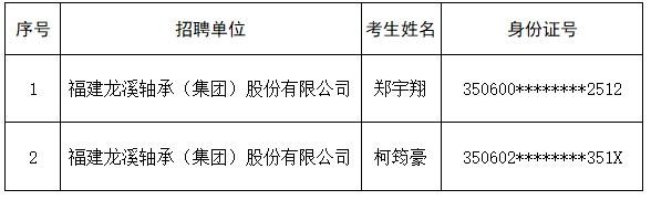 福建龍溪軸承(集團(tuán))股份有限公司關(guān)于2025年“市屬國有企業(yè)優(yōu)質(zhì)人才儲備庫”擬聘用人員的公示