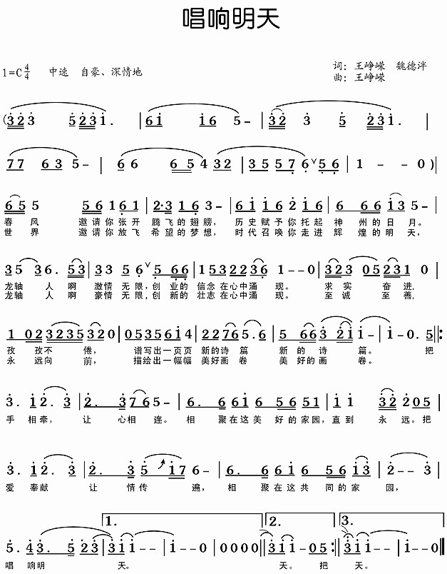 整首歌詞柔美抒情與激情豪邁兼容并蓄,用詞樸實卻又寓意深遠,頗有龍軸人腳踏實地、艱苦奮斗、志存高遠的風范。歌詞緊緊抓住“唱響明天”這一立意高遠的主題,以龍軸集團的發展歷程和前景為主線,著重體現了龍軸集團、龍軸人在“求實奮進”企業精神和“至誠至善”核心價值觀的指導下,經過幾十年的拼搏、奮斗,必將會有更美好的明天,借以抒發出龍軸人建設世界知名、客戶首選的現代企業集團的豪情壯志,讓大家自豪地唱出:相聚在這個共同的家園,龍軸,必將唱響明天!