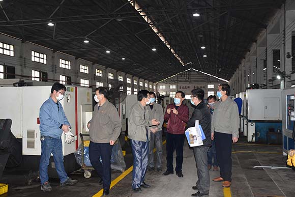 曾凡沛一行先后檢查了員工進(jìn)廠區(qū)體溫檢測、口罩佩戴、食堂管理、防控宣傳、安全生產(chǎn)等情況,并調(diào)研了與明鑫公司聯(lián)合研發(fā)全自動醫(yī)用口罩生產(chǎn)線的進(jìn)展情況。曾凡沛強(qiáng)調(diào),疫情就是命令,防控就是責(zé)任,我們要堅(jiān)持以習(xí)近平總書記關(guān)于疫情防控的重要指示精神為指引,積極貫徹中央、省、市相關(guān)通知精神,切實(shí)加強(qiáng)復(fù)工復(fù)產(chǎn)后新型冠狀病毒感染肺炎疫情一級應(yīng)急響應(yīng)期間返崗人員的健康管理工作,堅(jiān)定必勝信心,齊心協(xié)力打贏疫情防控阻擊戰(zhàn)。