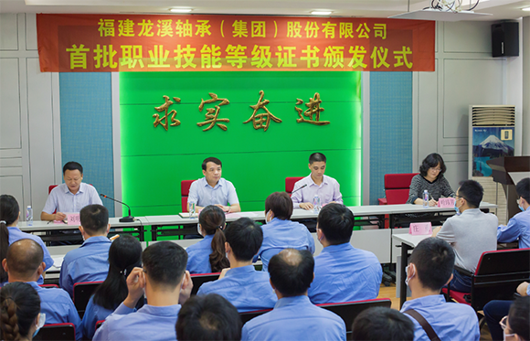 2020年11月19日上午,龍軸集團首批職業(yè)技能等級證書頒發(fā)儀式在公司二樓會議室隆重舉行。這是漳州市首家按照“誰評價、誰發(fā)證、誰負(fù)責(zé)”原則對首批163名通過企業(yè)職業(yè)技能等級認(rèn)定考核的職工頒發(fā)技能等級證書。漳州市人力資源和社會保障局副局長林貴達,龍軸集團黨委書記、董事長陳晉輝,黨委副書記劉明福等領(lǐng)導(dǎo)出席頒證儀式,40多名取得首批公司職業(yè)技能等級證書的職工代表及考評員代表參加。頒證儀式由劉明福主持。