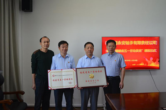 2020年10月19日,福建省五一勞動獎表彰會在福州市工人文化宮舉行,省總工會率先在全國工會系統(tǒng)采用“云表彰”的方式,通過頒獎主會場和三個分會場,對包括福建省永安軸承有限責(zé)任公司在內(nèi)的80個集體頒發(fā)了“福建省五一勞動獎狀”,230名個人頒發(fā)了“福建省五一勞動獎?wù)隆薄?/FONT>