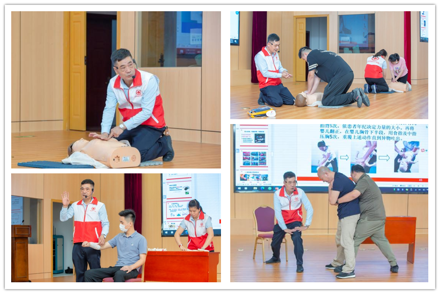 此次培訓(xùn)課程分為急救理論知識(shí)部分和急救技能實(shí)操部分。在急救理論知識(shí)部分,老師詳細(xì)講解了急救相關(guān)的理論知識(shí),強(qiáng)調(diào)了掌握急救知識(shí)和技能的重要性,并介紹了生活、工作中可能出現(xiàn)的常見的意外緊急情況的急救原則和處理程序。在急救技能實(shí)操部分,老師重點(diǎn)演示了心肺復(fù)蘇技術(shù)、海姆立克急救法、外傷包扎技術(shù)等日常實(shí)用的急救技術(shù),并現(xiàn)場(chǎng)邀請(qǐng)參與培訓(xùn)的員工上臺(tái)參與實(shí)操。員工踴躍參與,老師細(xì)心指導(dǎo),氣氛非常活躍。