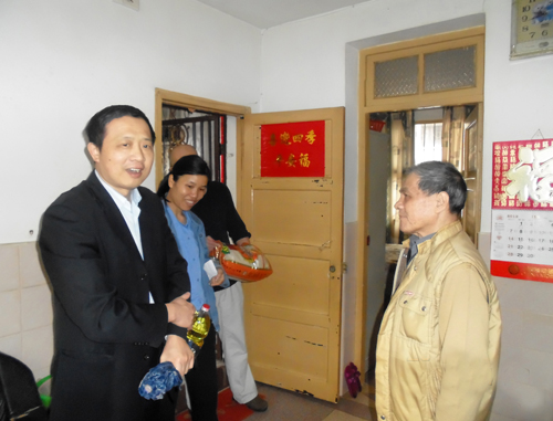2013年4月28日,五一勞動節(jié)前夕,市國資委開展機(jī)關(guān)干部掛鉤幫扶困難群眾活動,陳偉成等6位國資委干部在公司工會領(lǐng)導(dǎo)張?zhí)┥⒑辂惲岬鹊呐阃拢咴L慰問了我司6戶困難職工,了解他們的生活、健康情況,為他們送去米、油等生活用品。