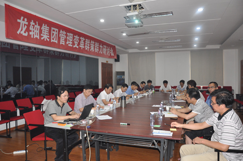 2013年7月20日上午至21日上午,針對公司發展涉及管理變革的相關問題,精益顧問邱模榮協同公司全體高層主管、副總師集中舉行了為期一天半的龍軸集團管理變革群策群力研討會。會議主要通過“設目標->劃范圍->擺問題->找原因->想辦法->定行動”六個方法步驟,采用頭腦風暴/問題樹、5W/因果矩陣/投票選擇法的方法工具,與會人員站在公司層面上系統思考,從能力與結果兩個維度,明確管理變革的愿景與期望達成的目標,界定管理變革涉及的層次與領域以及時間節點,進而描述現狀與問題的具體表現,找出導致問題產生的可能原因,挖掘深層原因,針對每個關鍵原因尋找最佳解決方案,最終針對確定的解決方案制定行動計劃。