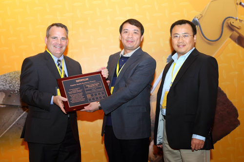 2012年12月10-11日,卡特彼勒公司在中國蘇州舉行的“2012卡特彼勒中國/韓國供應(yīng)商會議”,公司常務(wù)副總經(jīng)理陳晉輝及國際市場部員工參加會議。會上,針對我司大齒圈項目,卡特彼勒公司授予我司“2011年優(yōu)秀供應(yīng)商SQEP銅牌”,陳晉輝代表公司上臺接受授牌。
