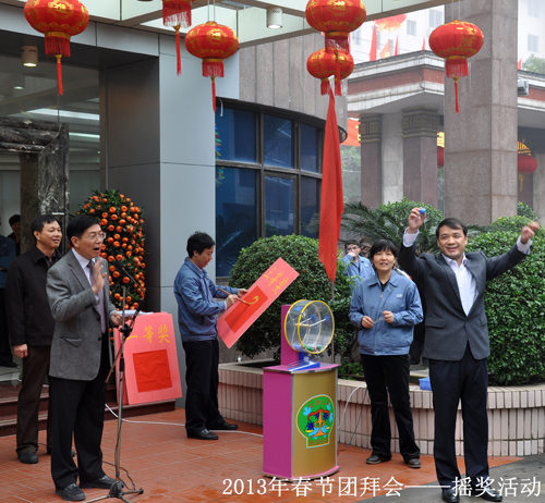 2月6日上午,一年一度具有龍軸特色的“春節團拜會”在公司總部召開,公司高管及2000多名在職、離退休員工相聚一堂,共慶佳節。會上,公司黨委書記、董事長曾凡沛代表公司黨委、總部發表新春致辭,員工代表張高德也代表全體員工做了發言。抽獎活動總是團拜的壓軸好戲,大家的情緒隨著搖獎機歡快的“噼里啪啦”聲高漲起來,每搖出一個號,就引來歡呼聲一片,現場熱鬧非凡!