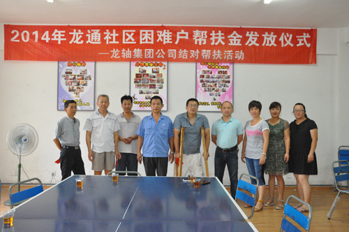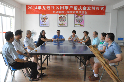 2014年8月8日,公司與薌城區(qū)南坑街道龍通居委會(huì)聯(lián)合舉行了“2014年幫扶特困戶幫扶金發(fā)放儀式”。 公司黨委副書記張?zhí)┥跁?huì)上再次向2012年結(jié)對(duì)幫扶的5戶龍通社區(qū)困難戶各發(fā)放了3000元的幫扶金,并和他們進(jìn)行了親切座談。面對(duì)受助人員溢于言表的感謝之辭,張?zhí)┥硎荆骸白鳛楦=ㄊ∥拿鲉挝唬瑤ь^開展社會(huì)公益事業(yè)是義不容辭的責(zé)任。希望你們的生活能有所改善,同時(shí),也希望通過(guò)這樣的行動(dòng),積極傳播扶危濟(jì)困的中華民族傳統(tǒng)美德,讓更多需要幫助的人得到社會(huì)關(guān)懷!”