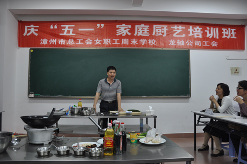 6月16日龍軸家庭廚藝培訓班培訓圓滿落下帷幕。從4月21日起,每周一晚上龍軸的廚藝愛好者都在市總工會職工業余學校接受廚藝的培訓。本次培訓是由公司工會主辦、市總工會協辦,分五個晚上進行培訓,并邀請長期從事烹飪行業的烹飪大師擔任授課老師,采取理論講解、現場操作和學員互動等方式進行。
